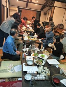 今年の夢街道まつりの慰労会の様子です。可部の郷土食ともいえる「鯛そうめん」をはじめとした手作り料理を囲んでの懇親会です。