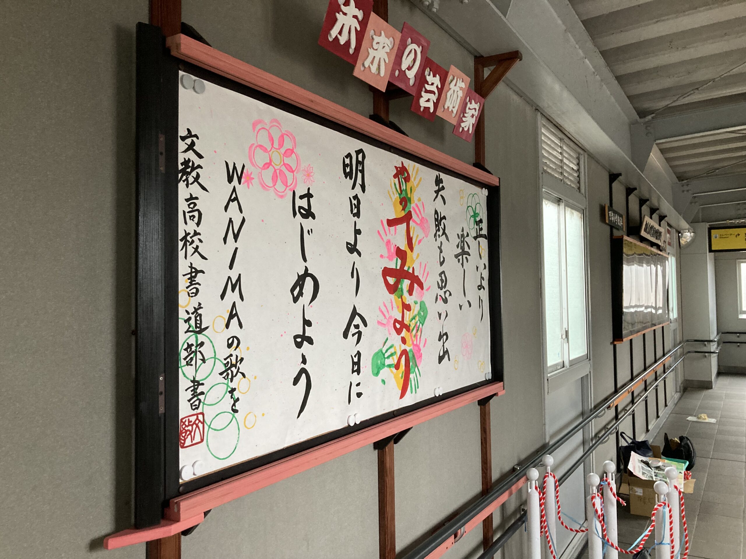 さらに令和5年度は「未来の芸術」として新たにボードを作成。ここから始まる可部芸術家の誕生を願い設置しました。(初年度は広島文教高校書道部作)