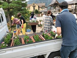 10月19日に開催される「可部夢街道まつり2025」に向けて、街道沿いの家々に飾らせていただく一輪挿しの花づくりを行いました。